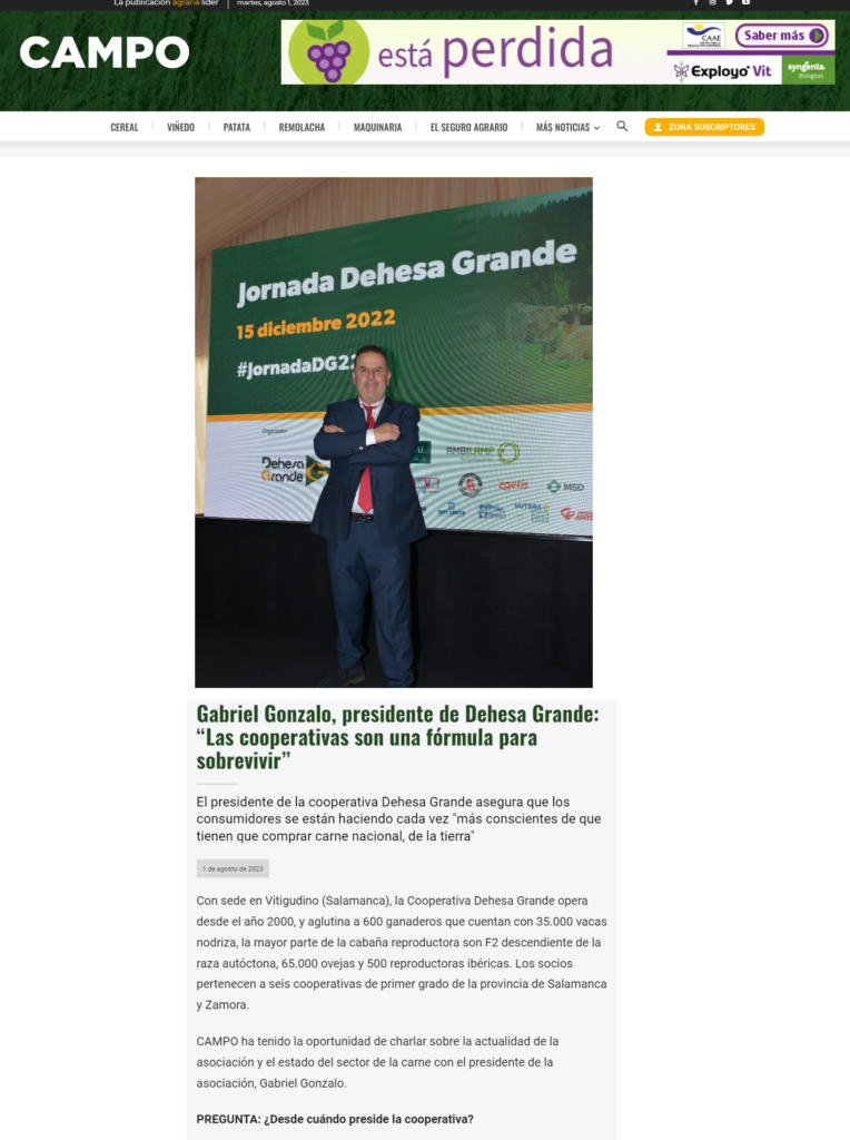 El periódico especializado, Campo Cyl, entrevista a nuestro presidente, Gabriel Gonzalo, para hablar de la actualidad del sector de vacuno de carne. En dicha entrevista se habla de los actuales precios del vacuno, de la figura de las IGP, de la importancia de las cooperativas o de las nuevas tendencias y gustos del consumidor de carne de vacuno.