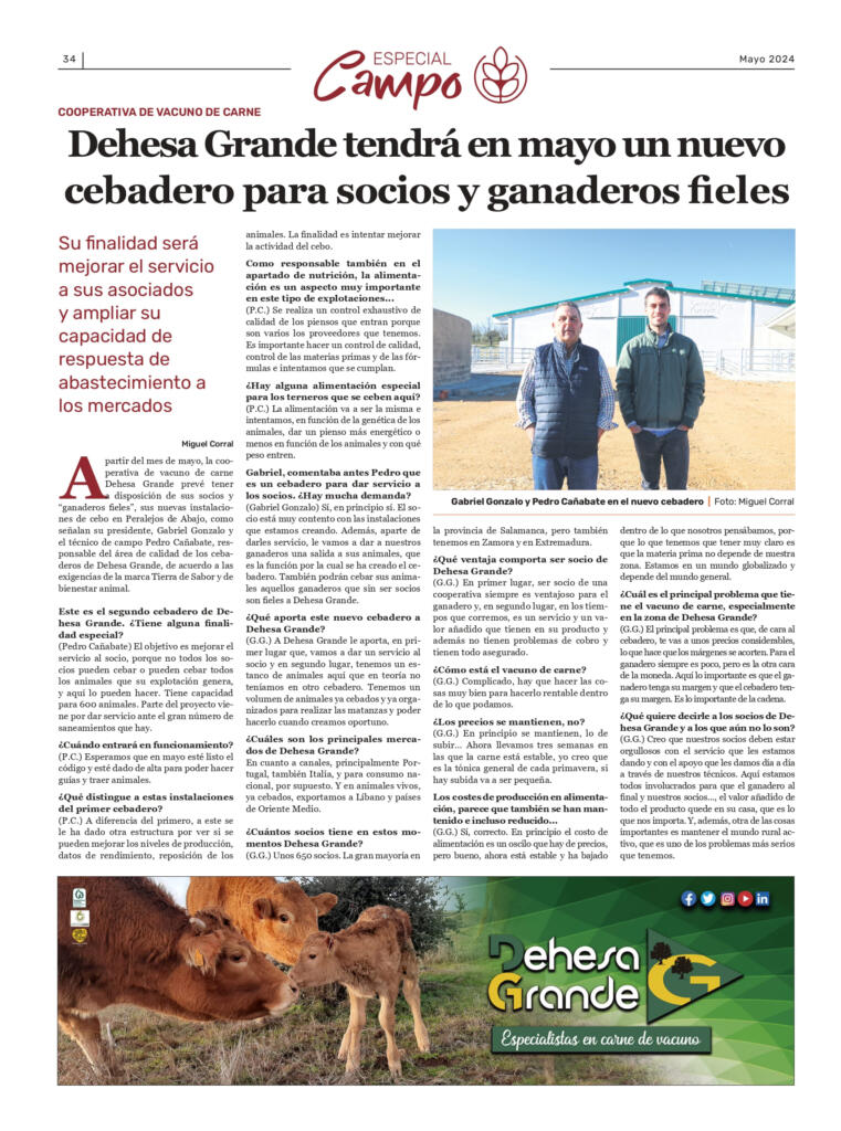 Nuestro presidente, Gabriel Gonzalo, junto a nuestro técnico de campo Pedro Cañabate, responsable del área de calidad de nuestros cebaderos, hablan de nuestro nuevo cebaderos en Salamanca Al Día, en su Especial Campo.