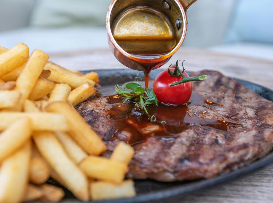 - Cuando ya tengas el chuletón listo, pásalo a una tabla y déjalo reposar 2 minutos antes de cortarlo, para que los jugos se asienten en su interior.